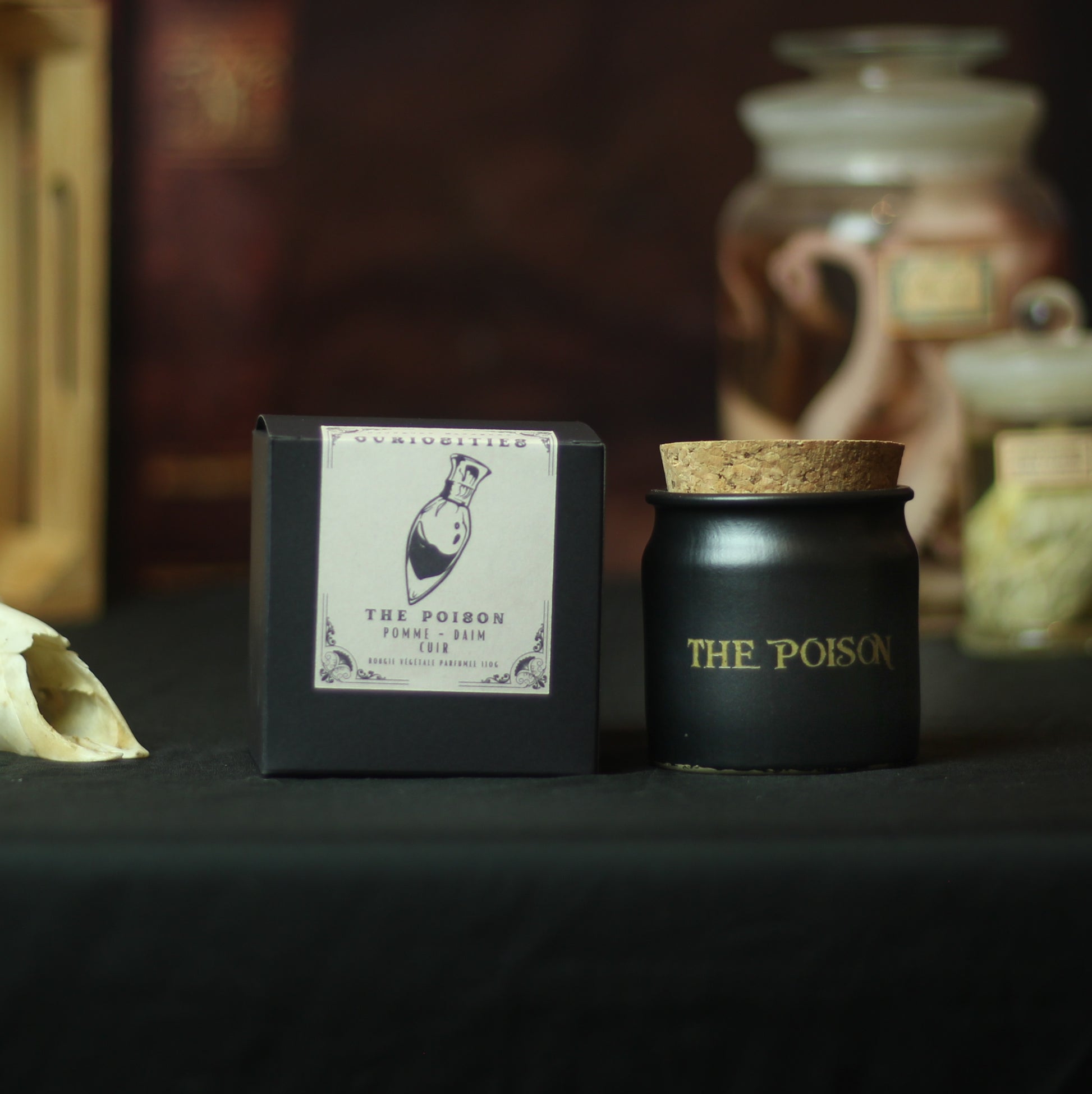 The Poison, la bougie aux notes olfactives de pomme, daim et cuir